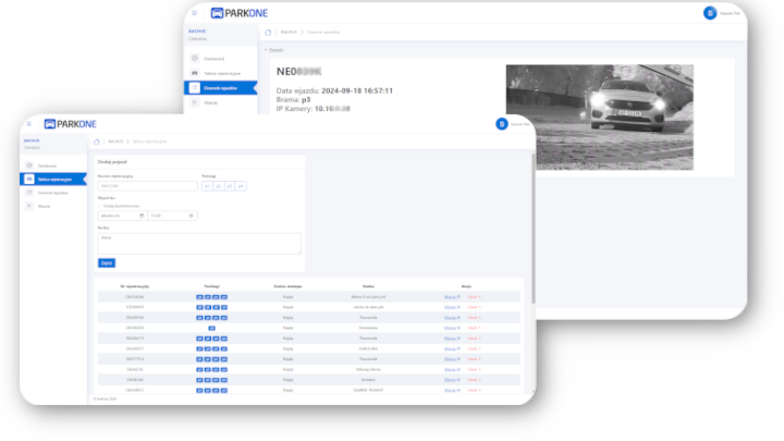 Zarządzaj parkingiem z dowolnego miejsca na świecie 🌍. Wygodny panel do zarządzania białą oraz czarną listą, podgląd aktualnego stanu kamer oraz szlabanów przeglądania statystyk i ostatnich wjazdów.
